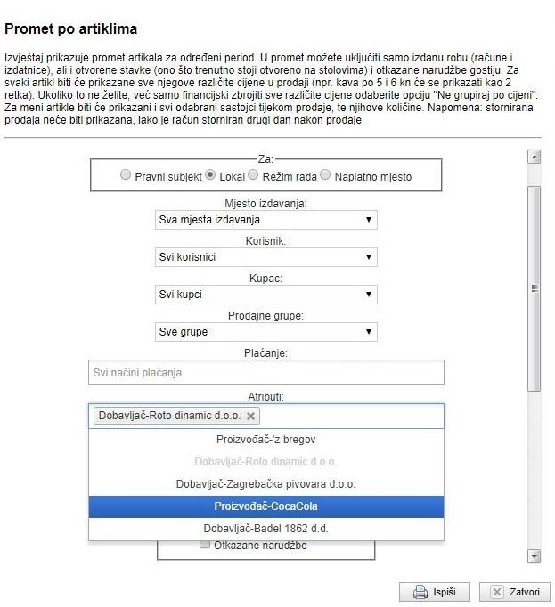 Atributi omogućuju personaliziranje izvještaja prometa artikala.
