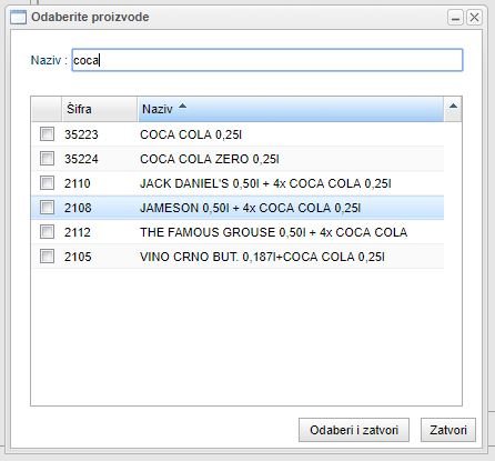 Pronađite i odaberite artikle te pritisnite “Odaberi i zatvori”, nakon čega će Vam se artikli pojaviti u listi artikala odabranog atributa.