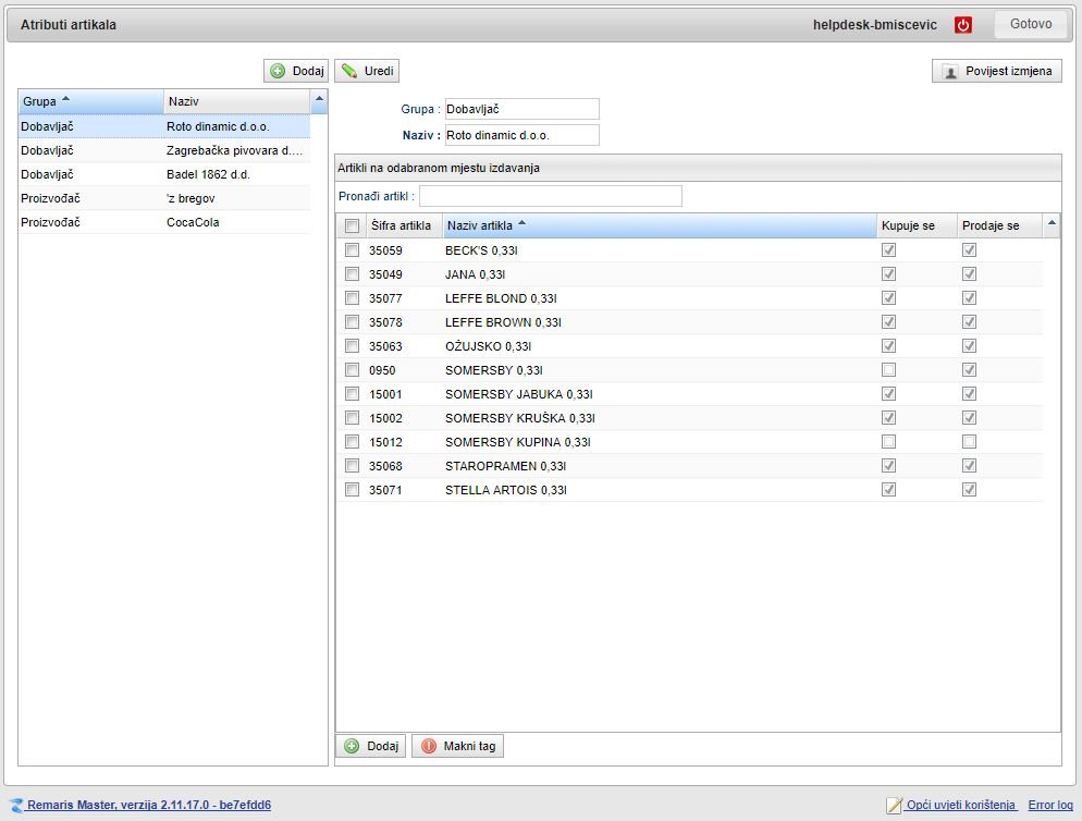 Također smo u modul “Artikli” dodali karticu za dodavanje / brisanje artikla iz atributa. U ovom pregledu također možete lakše vidjeti koje atribute odabrani artikl sadrži.