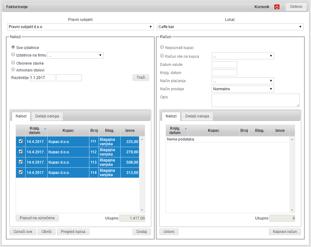 U fakturiranju imate pregled svega izdanog, za što nije napravljen račun.