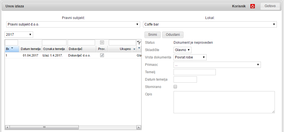 - Polje Stornirano koristite ako želite poništiti ovaj dokument.