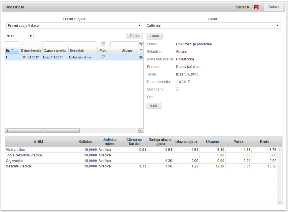 Otvorit će vam se forma izlaza gdje u listi lijevo vidite sve provedene izlaze.