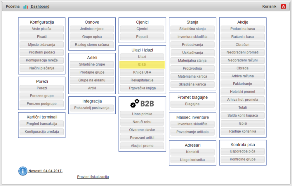 Da bi došli do izlaza na početnoj formi kliknite na Izlazi