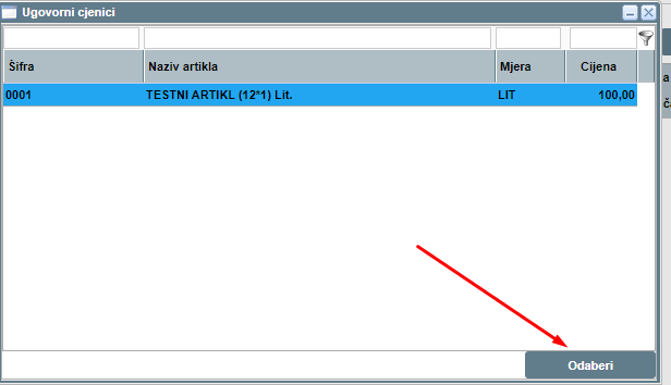 Pritisnemo na taj artikl kojeg želimo naručiti, te pritisnemo ODABERI: